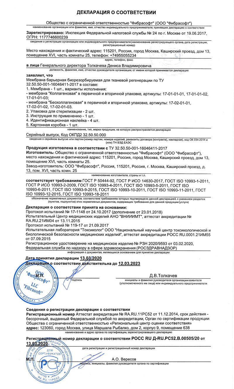 Прогнозируемые остеопластические свойства мембраны, биосовместимый материал с оптимальным временем биорезорбции